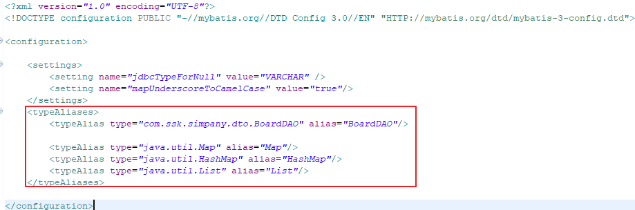이러한 문제를 미연에 방지할 수 있는 방법이 바로 Mybatis의 typeAlias(별명) 설정이다.