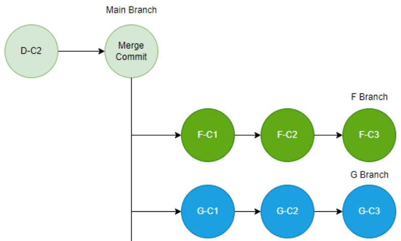 이제 Main 브랜치에서 G 브랜치를 Merge 하면 Fast Forward Merge 방식으로 병합된다.