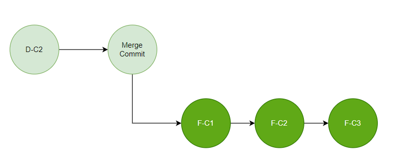 이제 Main 브랜치에서 F 브랜치를 Merge 하면 Fast Forward Merge 방식으로 병합된다.