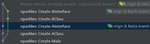 직접 테스트를 해보면 아래와 같이 직렬 형태의 깃 히스토리가 남는 것을 알 수 있다. 알아보기도 쉽다.