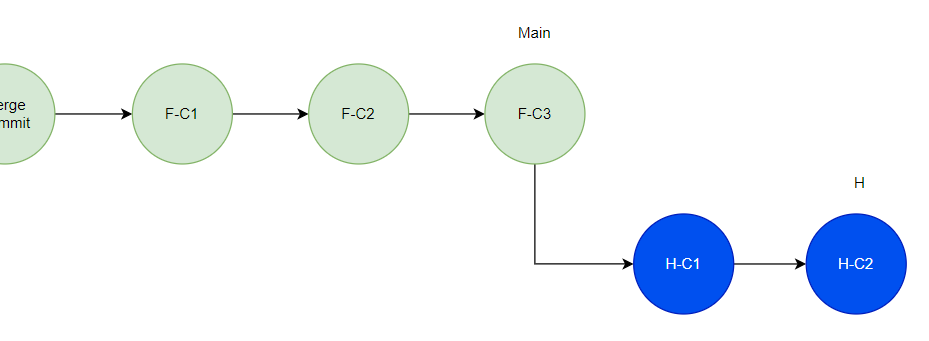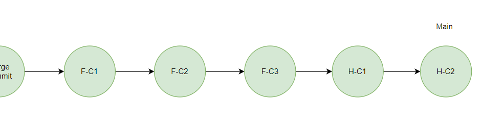이제 Main 브랜치에서 H 브랜치를 Merge 하면 Fast Forward Merge 방식으로 병합된다.